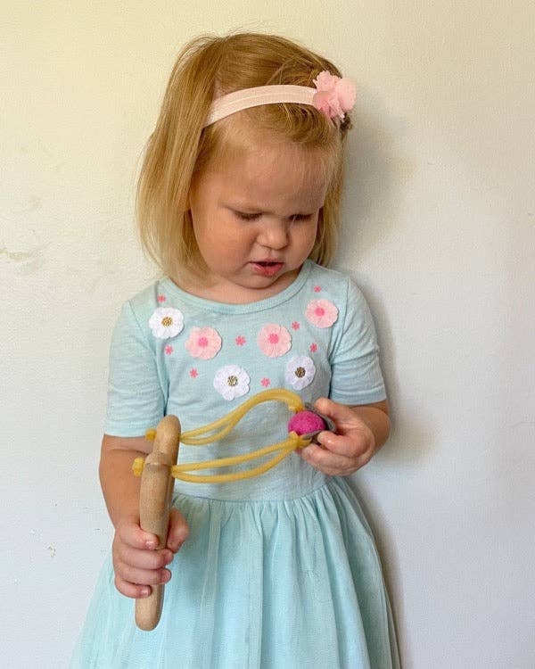 Wood Slingshots with Felt Pom Pom Ammo are the perfect Christmas gifts for any kid or adult. Each slingshot comes with 16 felt balls making this toy perfect for gentle play.